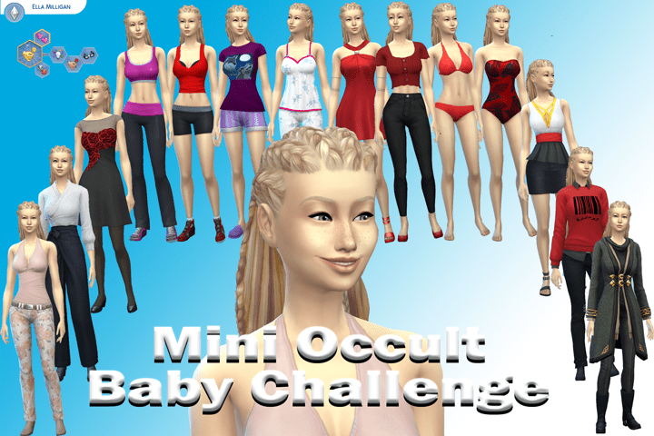 These sims need to be shared to the gallery. The challenge version shared to the gallery needs to be made without custom content, preferably using #minioccultbabychallenge in the description. If you do use custom content feel free to do a version with custom content and show screenshots of both so we can see the differences!
