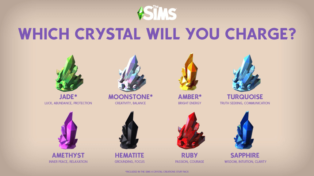 Jade was also mentioned there, it said “Sims will randomly find crystals around the house”.