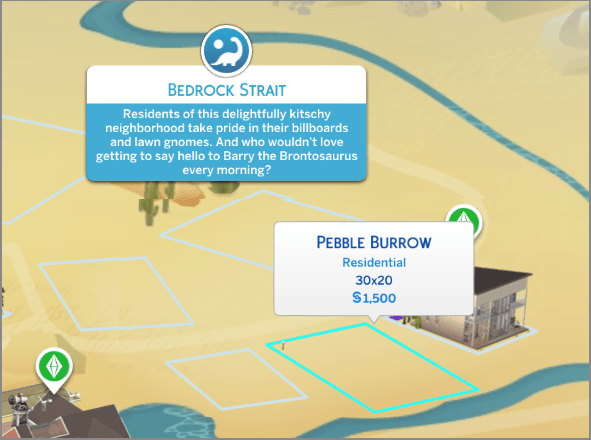 After living a sheltered life where we couldn’t even control her directly, our new drifter Jackie Driver is returning to the first neighbourhood of the Drifter challenge started in (Bedrock Strait in Oasis Spring). She will be living in Pebble Burrow, a 30×20 lot. This is the neighbourhood where Johnny Zest usually lives in a new save!