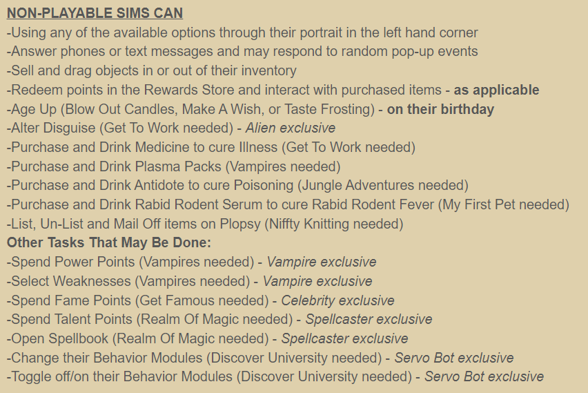 Details of what we can do with non-played sims in this house (as of Feb 3/2021):