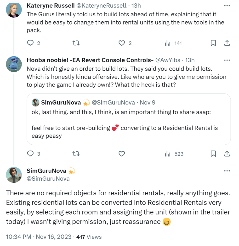 SimGuruNova Tweets re the Pack from After the Gameplay Walkthrough: