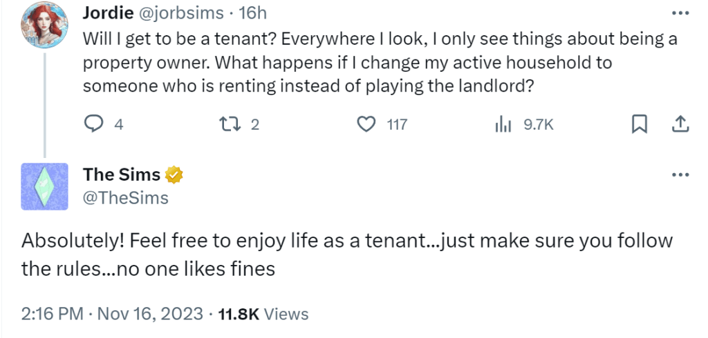 They showed a maintenance event. You can hire someone to look after it (two options, cheap contractor and expensive contractor) or your sim as the landlord can look after it themselves or they can leave the tenant to deal with it. There’s a water leak, haunting event, they mentioned insects too. So, there are different types of maintenance events.