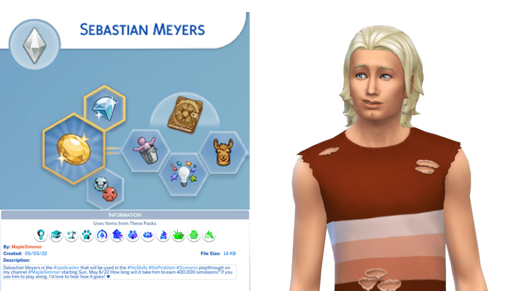 Sebastian is a creative freegan who is also an animal enthusiast with the bonus collector trait from choosing the curator aspiration. While he can’t learn any skills, as a spellcaster he can still learn magic. If you’d like to play along, Sebastian is on the gallery under my Origin ID MapleSimmer.