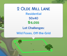 Our sims will be starting with nothing. Their lot is off the grid and they will have to pay 6,055 to connect to the grid (starting value of their lot, 2 Olde Mill Lane, which comes with some landscaping, but no home or amenities).