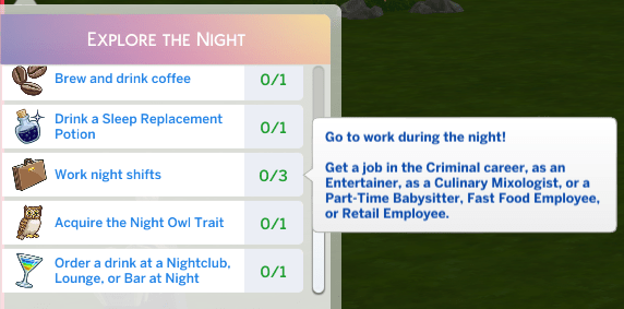 1. Complete the new aspirations that come with both Adventure Awaits (Critter Hunter & childhood aspiration Cool Kid on the Block) & Enchanted by Nature (Elixir Enthusiast, Nature Nomad & Fairy Stories plus one of the two aspirations that unlock when you complete that aspiration) with at least one sim in our household.